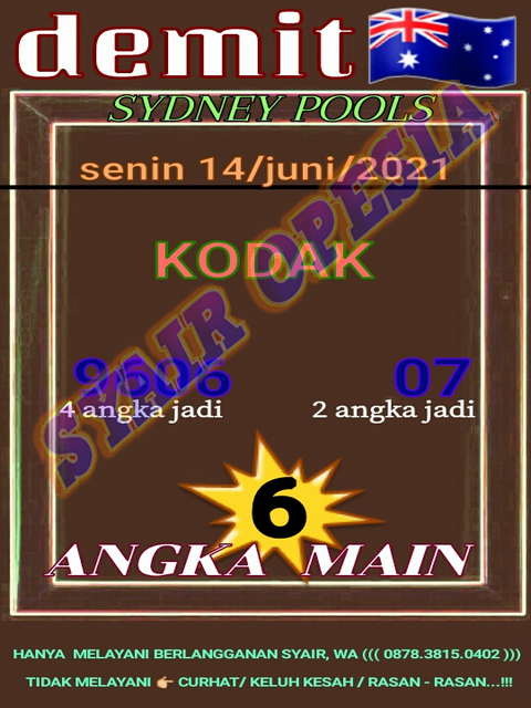 Prediksi sydney hari ini minggu 08-05-2022 BBFS : 7 5 0 8 3 4 2 4D BB / BOOM : 3507 / 8724 / 4708 / 2305 3DBB / BOOM : 784 / 320 / 083 / 725. Prediksi Sydney 69 Keluaran Hari ini. Prediksi Sydney, rumus pola tarung dan rekap angka 2D sidney akan kami update secara rutin buat para member setia jitu sydney , setelah hasil pemutaran live draw pasaran sydneypools. Selain Live Draw Sydney, kami juga rekap Data Keluaran Taiwan 2023 mungkin sangat berguna bagi anda yang sedang mencari nomor.